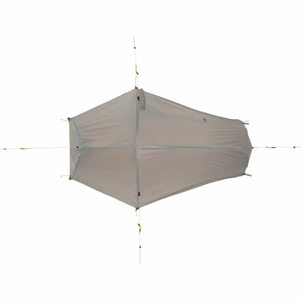 Für alle, die es noch etwas leichter wollen: Es besteht auch die Möglichkeit, das Außenzelt mit der separat erhältlichen Zeltunterlage aufzubauen und das Innenzelt zu Hause zu lassen. So entsteht ein ultraleichter Wetterschutz.