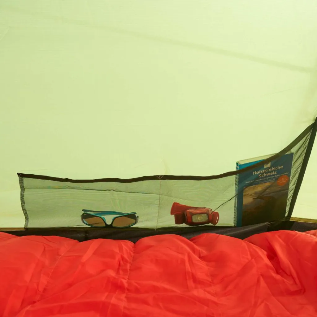 Und selbst wenn du kein Hüne bist, kannst du die zusätzliche Ecke im Innenzelt gut nutzen. Bekleidung und Ausrüstung kann hier geschützt vor Schmutz und Nässe platziert werden, ohne im Weg zu liegen.