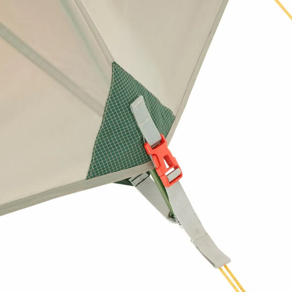 Praktisch: Der tropfenförmige Eingang des Innenzelts ist so konzipiert, dass die Tür beim Öffnen nicht in den Matsch fällt. Nach dem Öffnen kannst du sie in einer Deckentasche verstauen, wodurch sie nicht im Weg hängt.