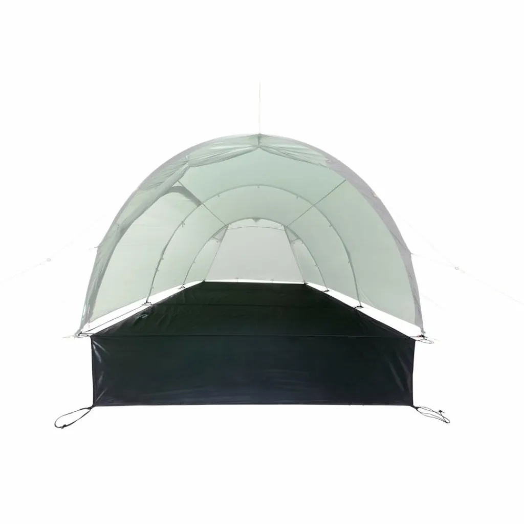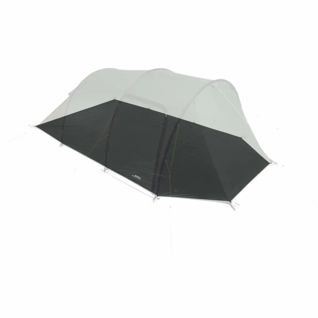 Deckt die gesamte Fläche ab (Innenzelt + Apsis).