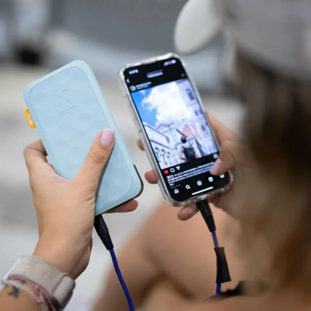 Die handliche Powerbank bietet bis zu 20 W Power am USB-C-Ausgang. Insgesamt stehen drei Anschlüsse zur Verfügung: Neben dem leistungsstarken 20-W-USB-C-PD-Anschluss gibt es einen zusätzlichen 18-W-USB-C-Anschluss und einen 18-W-USB-A-Anschluss. Alle drei Ladeplätze können einzeln oder gleichzeitig genutzt werden.