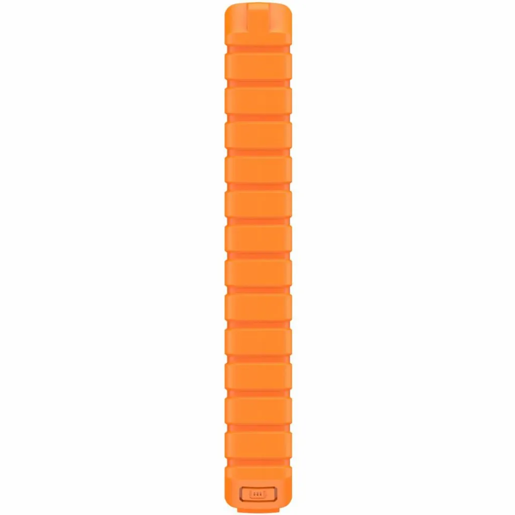 Das Gehäuse besteht aus recyceltem Polycarbonat und ist mit einem TPU-Überzug vor Stößen geschützt. Eine Öse an der Gehäuseecke ermöglicht die Befestigung am Gepäck. Praktisch für Outdoor-Abenteuer: Die integrierte Taschenlampe, die mit einem langen Druck auf die Powertaste aktiviert wird. Sie bietet konstantes Licht mit zur Orientierung im Camp oder Zelt.